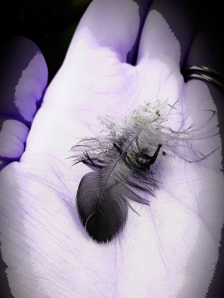 Without a trace of doubt God in my mind, feathers are His specific calling cards for me. He, or His angels have left me bits of tangible hope by way of birds flying by at the exact moment in time, dropping a loose feather, the wind blowing it here and there, lodging it somewhere obvious enough to see. At that moment my downcast soul is directed upward, with joy.